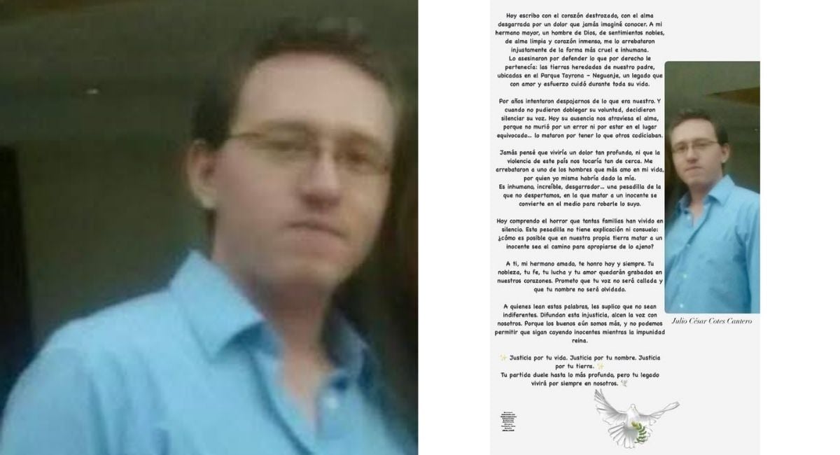 “Por años intentaron despojarnos de lo que era nuestro. Y cuando no pudieron doblegar su voluntad, decidieron silenciar su voz. Hoy su ausencia nos atraviesa el alma, porque no murió por un error ni por estar en un lugar equivocado… lo mataron por tener lo que otros codiciaban”, expresó.