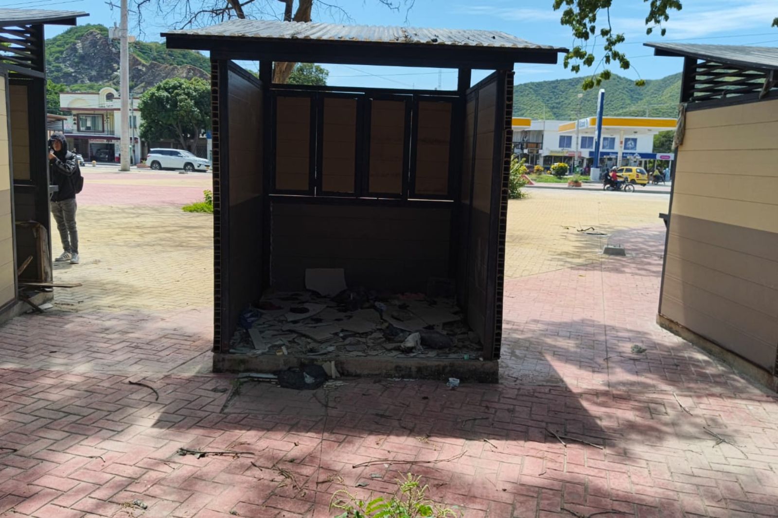 Al recorrer la zona, se evidencia el deterioro del espacio público. Las casetas construidas para ser ocupadas por vendedores están en completo abandono: vandalizadas, destruidas, llenas de desechos y con partes de su estructura robadas.