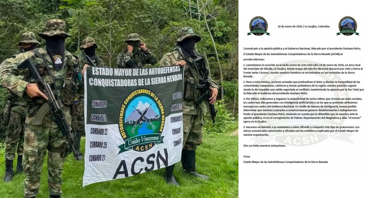 Viernes 16 de Enero de 2026 – 1:29pmA través de sus redes sociales, las Autodefensas Conquistadoras de la Sierra Nevada, se pronunciaron sobre la ofensiva armada del Ejército Nacional, durante el pasado miércoles 14 de enero.