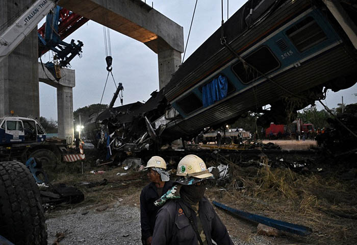 Al menos 32 personas murieron y otras decenas resultaron heridas al caer una grúa sobre un tren de pasajeros en Tailandia, según el último balance de las autoridades locales.
