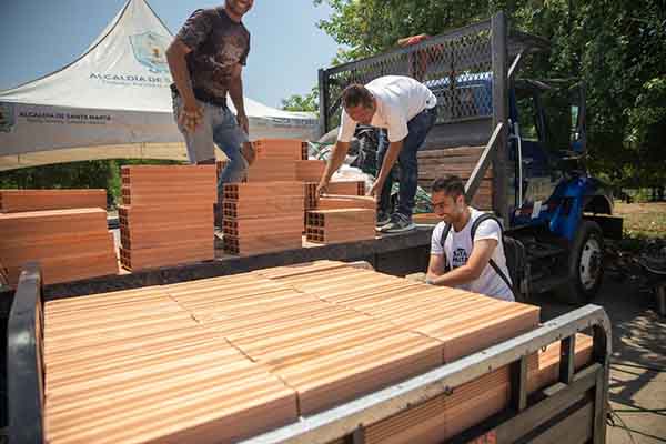 Bajo la directriz del alcalde Carlos Pinedo, un nutrido equipo institucional llegó hasta Villa Betel para entregar 1.300 bloques, alrededor de 97 tejas y 26 láminas de Eternit, 89 varillas y 100 bultos de cemento.