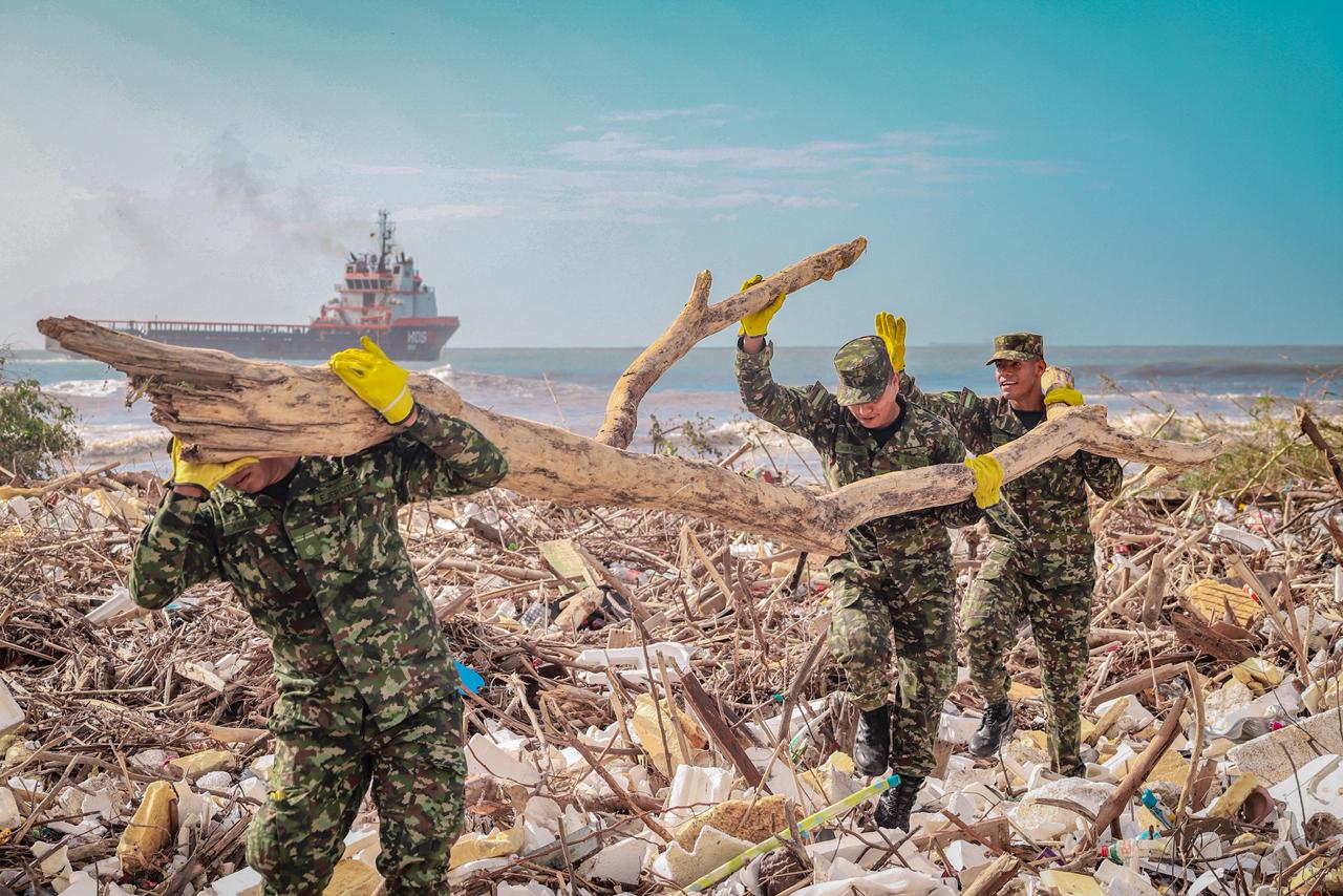 Siguiendo las directrices del alcalde Carlos Pinedo Cuello, el equipo interdisciplinario de la AlcaldÃa Distrital de Santa Marta en articulación con el sector público y privado, avanzan satisfactoriamente en la jornada de limpieza en la playa Los Cocos, uno de los puntos más afectados por el paso del frente frÃo, que provocó la expulsión de residuos y materiales contaminantes desde el mar.