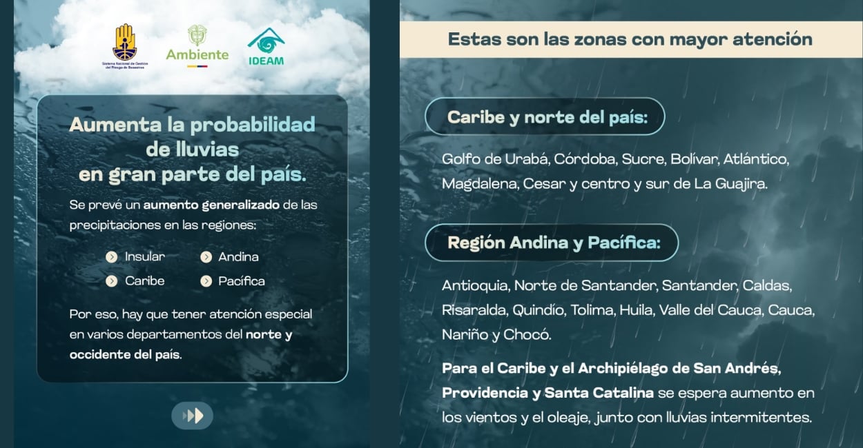 El Ideam advierte que el aumento de las precipitaciones no se limitará a la costa, sino que se extenderá a las regiones Andina y Pacífica.