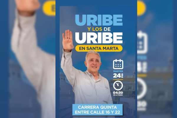 De acuerdo con la pieza divulgada en redes sociales, el evento denominado “Uribe y los de Uribe en Santa Marta†se llevará a cabo el martes 24 de febrero a partir de las 4:30 de la tarde, en la avenida Campo Serrano entre calles Santo Domingo (calle 16) y Avenida Santa Rita (calle 22).