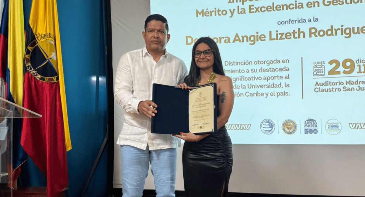 Lunes 29 de Diciembre de 2025 – 3:00pmLa Universidad del Magdalena entregó en Santa Marta la Medalla al Mérito y la Excelencia en Gestión Pública a Angie Lizeth Rodríguez Fajardo, directora del Departamento Administrativo de la Presidencia de la República (Dapre).