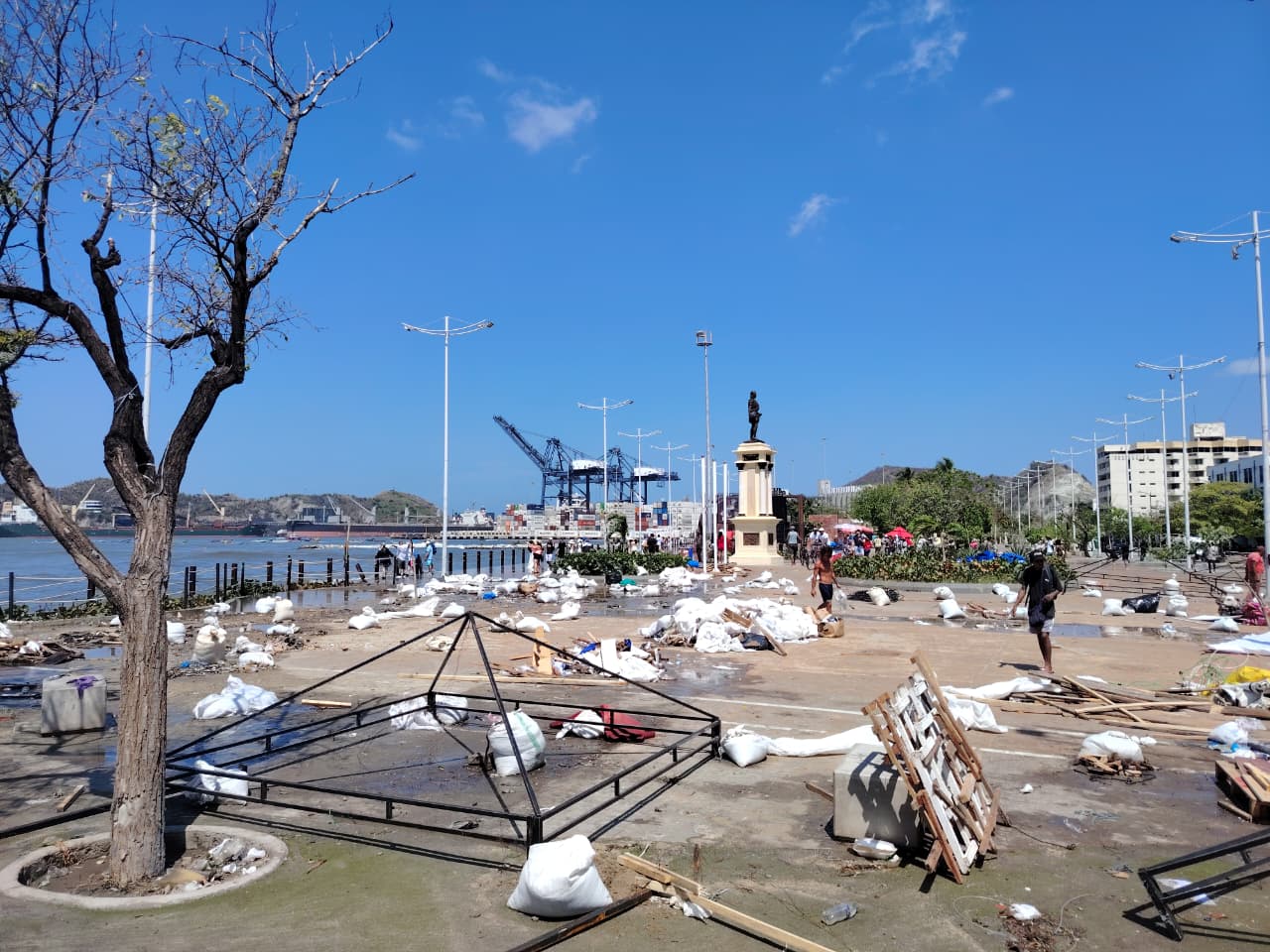 Durante un recorrido realizado este martes, se observaron múltiples residuos esparcidos sobre el pavimento, sacos de arena desplazados, estructuras metálicas desmontadas y restos de madera arrastrados por el agua, evidenciando la fuerza del oleaje que logró sobrepasar la lÃnea costera en algunos tramos.