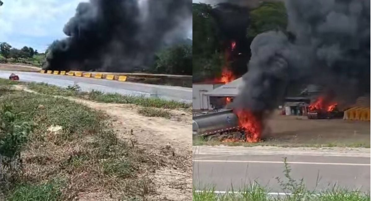 Hoy, los violentos volvieron a causar pánico tras provocar un incendio en la vía que comunica al municipio de Plato (Magdalena) con Carmen de Bolívar.