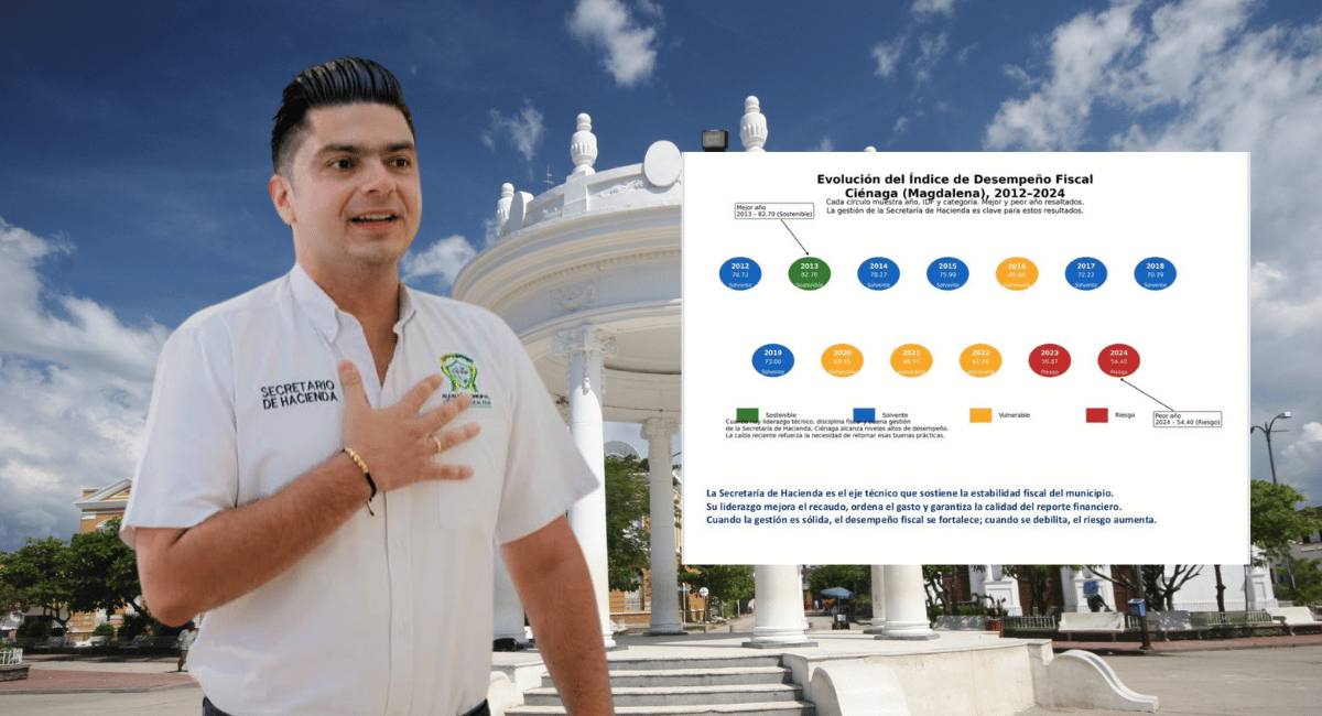 El escenario actual resulta más preocupante al compararlo con el desempeño histórico del municipio. En 2013, Ciénaga alcanzó 82,70 puntos en el IDF, ubicándose en la categoría Sostenible. Hoy, el municipio se encuentra 28 puntos por debajo de ese nivel, instalado nuevamente en riesgo fiscal.