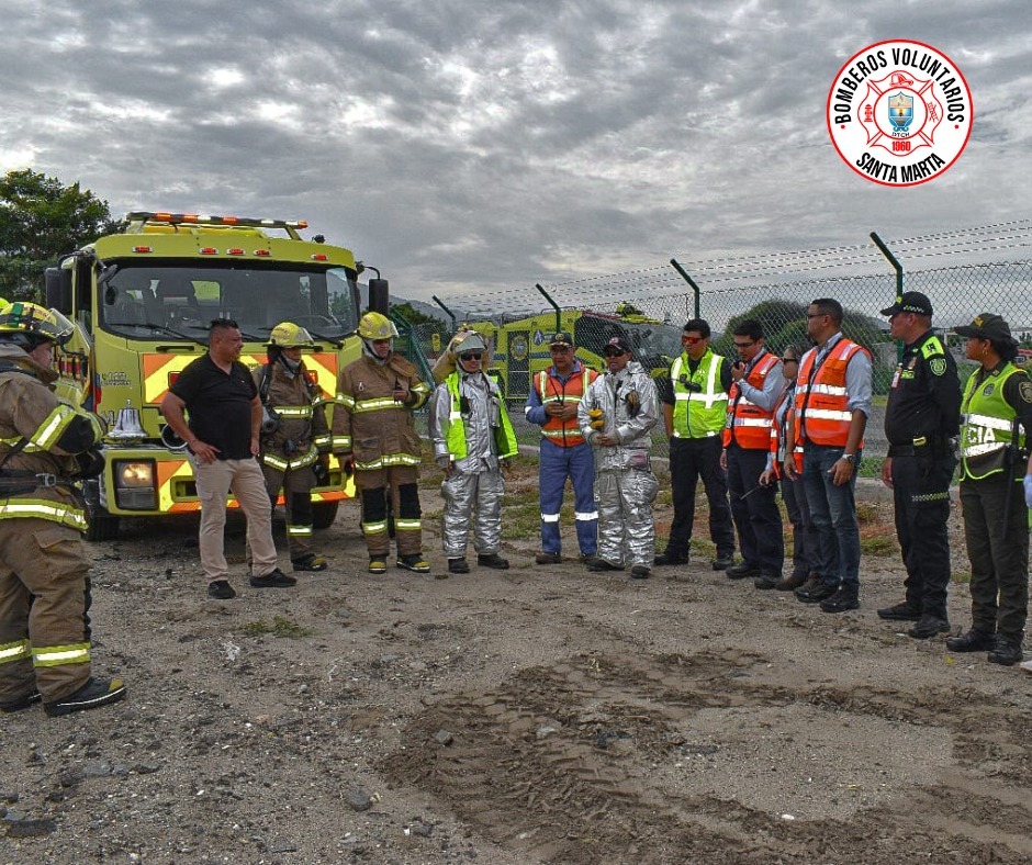 El Cuerpo de Bomberos Voluntarios de Santa Marta (CBVSM) hizo parte activa del simulacro de accidente de aeronave con impacto en el mar, realizado en la zona de playa cercana al ingreso del Aeropuerto Internacional Simón Bolívar. El ejercicio, desarrollado este martes, tuvo como objetivo principal poner a prueba los protocolos de seguridad y la articulación interinstitucional en caso de presentarse una emergencia de gran magnitud en el área aeroportuaria.