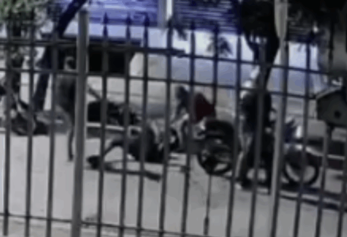 En la grabación se observa a la víctima caminando por la zona, presuntamente hacia su vivienda, cuando fue sorprendida por los antisociales que se movilizaban en motocicleta.
