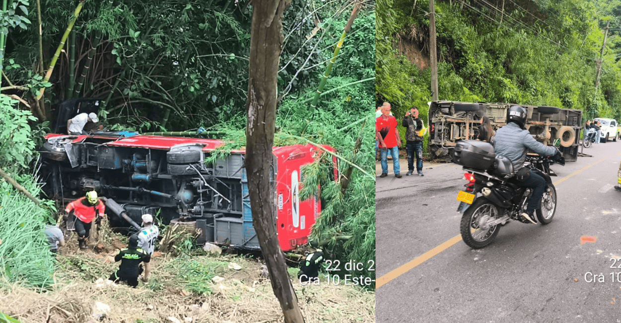 Lunes 22 de Diciembre de 2025 – 2:53pmLa tranquilidad del corregimiento de Santa Elena, zona rural de Medellín, en el departamento de Antioquia, se vio interrumpida este lunes por un aparatoso accidente vial.