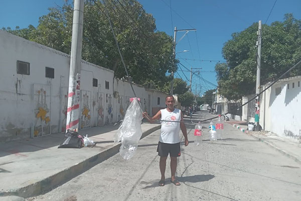 La comunidad del sector de Gaira, específicamente en la calle 8 con carrera 11, vive una situación de alto riesgo debido a un cable de telefonía móvil que permanece tirado a lo largo de la vía, sin que hasta el momento ninguna empresa de telecomunicaciones haya atendido el problema.