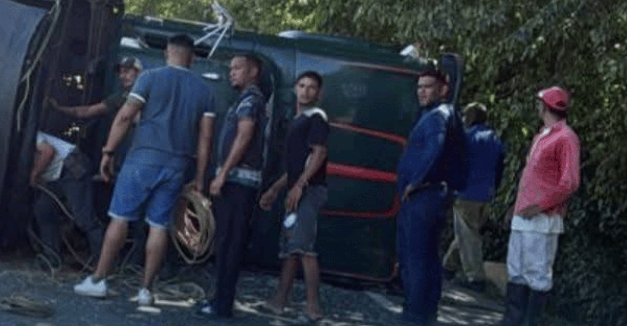 Viernes 19 de Diciembre de 2025 – 3:25pmUn fuerte siniestro vial interrumpió la tranquilidad de la Troncal del Caribe este viernes. Un camión de estacas que cubría la ruta ganadera sufrió un volcamiento lateral cuando transitaba cerca del corregimiento de Guachaca, de Santa Marta.