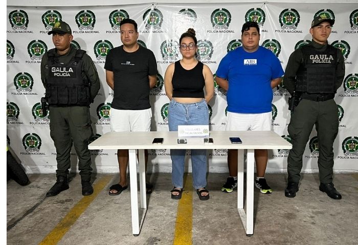 Las tres personas son señaladas de haber participado en un caso de extorsión contra una empleada de una reconocida joyería de la capital del Atlántico.“De acuerdo con la investigación, la víctima fue presionada mediante amenazas, lo que la llevó a entregar una suma aproximada de 86 millones de pesos en efectivo y transferencias bancarias, así como 40 millones de pesos en joyas”, se lee en el comunicado de la Policía.