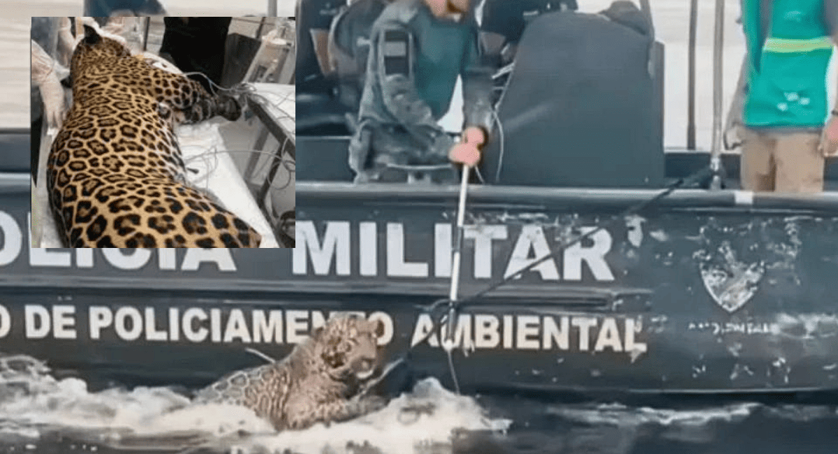 Conmovedor: jaguar herido es rescatado tras nadar horas en el Río Negro en Brasil