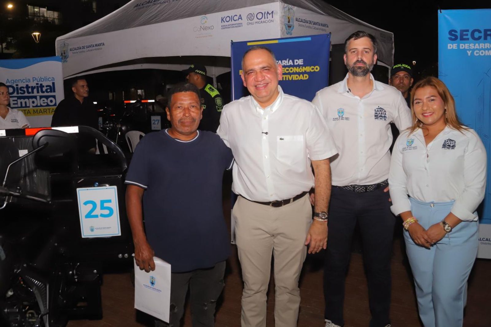 La Alcaldía Distrital de Santa Marta, a través de la Secretaría de Desarrollo Económico y Competitividad, realizó la entrega de 34 motocarros a pescadores artesanales del Parque Tayrona, como parte del cumplimiento de la Sentencia T-606 de 2015 emitida por la Corte Constitucional.