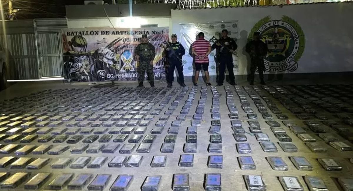 Miércoles 10 de Septiembre de 2025 – 2:50pmEn el marco del Plan de Campaña Ayacucho Plus, soldados del Batallón de Artillería de Defensa Antiaérea N.° 1, orgánicos de la Décima Brigada, en coordinación con la Policía Nacional, lograron en las últimas horas la incautación de aproximadamente 619 kilos de clorhidrato de cocaína en zona rural del municipio de Uribia, La Guajira.