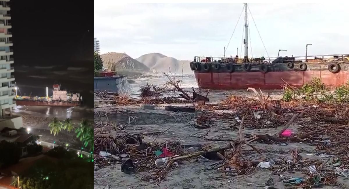 El buque dedicado al suministro de gasolina, se encontraba en zona de fondeo, cuando se vio imposibilitada de maniobrar en la marea alta, y terminó en la orilla de Los Cocos, a escasos metros de las unidades residenciales.