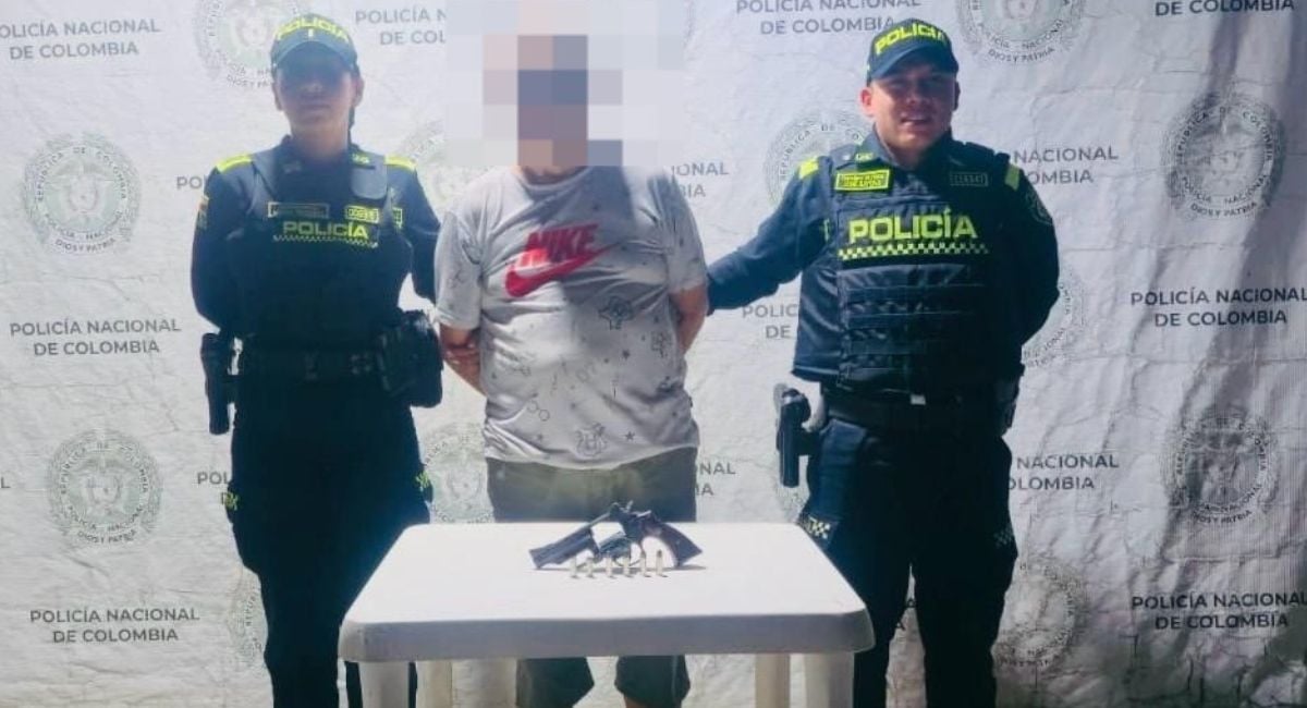 De manera inmediata, uniformados del Modelo del Servicio de Policía Orientado a las Personas se desplazaron hasta el lugar de los hechos, donde lograron ubicar y capturar al presunto responsable, a quien se le halló en su poder un revólver calibre 38 milímetros, con seis cartuchos, sin la documentación que acreditara su legalidad.