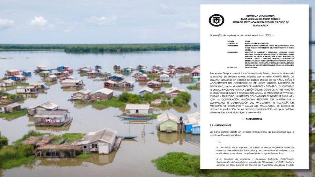 Un fallo judicial histórico obliga a entidades nacionales y territoriales a garantizar los derechos fundamentales al agua, la salud y la vida digna de las comunidades palafíticas de Nueva Venecia y Buenavista. El Juzgado Sexto Administrativo de Santa Marta emitió un fallo de tutela a favor del defensor de derechos humanos Andrés Gil, quien interpuso […]