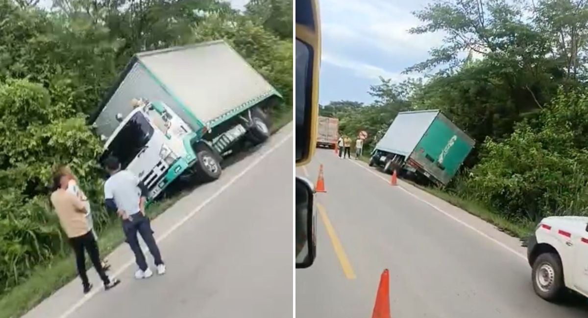 Según las primeras versiones, camión tipo furgón, por razones desconocidas, perdió el control y terminó volcado a un costado de la vía.