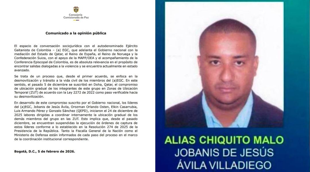 El Gobierno nacional confirmó, a través de un comunicado oficial, que desde diciembre de 2025 se suspendieron las órdenes de captura contra varios de los principales jefes del autodenominado Ejército Gaitanista de Colombia (EGC), en el marco de los acercamientos de paz con esa estructura armada. Según informó la Consejería Comisionada de Paz, la medida […]