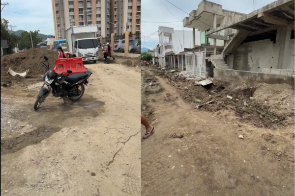 “Nos estamos viendo sumamente afectados por la suspensión de los trabajos. No tenemos redes de aguas blancas ni negras y aquí viven personas mayores, niños y pacientes con enfermedades catastróficas. No pueden dejarnos así”, denunció Verena Castiblanco, líder del comité Mi Calle de la Urbanización Tairona.