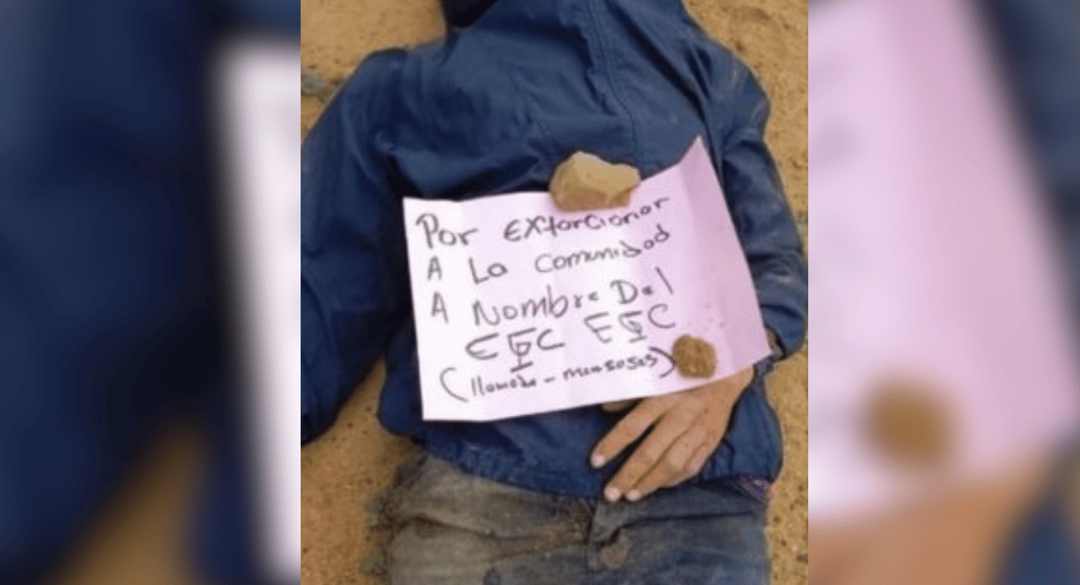 De acuerdo con la información preliminar conocida en el lugar, sobre el pecho del hombre fue dejado un cartel con el mensaje: “Por extorsionar a la comunidad a nombre del EGC”, lo que generó temor entre los habitantes de la zona.