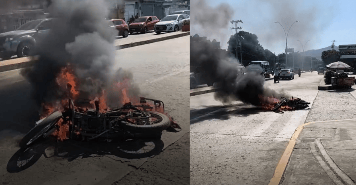 Mientras los heridos quedaban neutralizados en el pavimento, un grupo de ciudadanos enfurecidos procedió a incendiar la motocicleta de los sospechosos. En cuestión de minutos, las llamas y la densa columna de humo negro paralizaron el flujo vehicular en esta importante arteria vial.