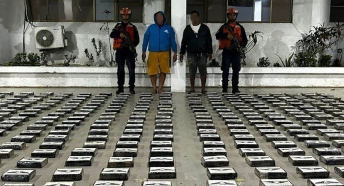 La operación fue ejecutada de forma conjunta entre la Armada Nacional y la Fuerza Aérea Colombiana, permitiendo no solo la incautación de la droga, sino también la captura de dos personas que iban en la embarcación.