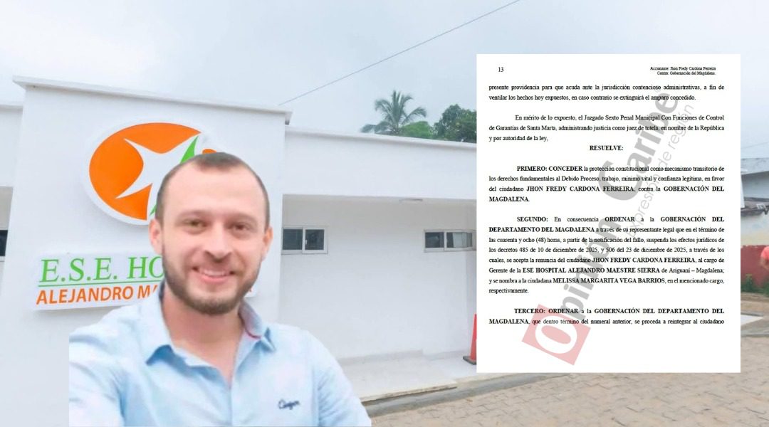 Con este fallo, en un momento político clave, el amigo de la congresista Ingrid Johana Aguirre continuará al frente de la ESE Hospital Alejandro Maestre Sierra, en el municipio de Ariguaní. Un fallo de tutela proferido por el Juzgado Sexto Penal Municipal con funciones de Control de Garantías de Santa Marta ordenó el reintegro […]