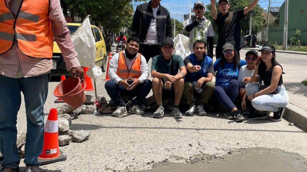 La unión hace la fuerza: estudiantes y ciudadanos se unieron para tapar un enorme hueco en la vía que conduce a la Unimag