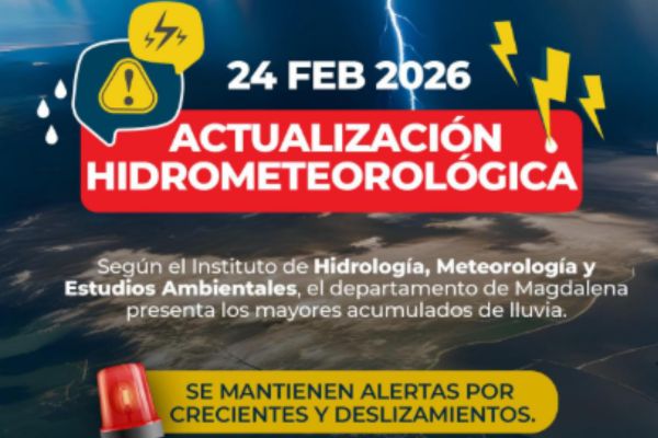 La Corporación Autónoma Regional del Magdalena informó, en su más reciente actualización hidrometeorológica del 24 de febrero de 2026, que se mantienen alertas por incrementos súbitos en rÃos y quebradas, especialmente en zonas influenciadas por la Sierra Nevada de Santa Marta.