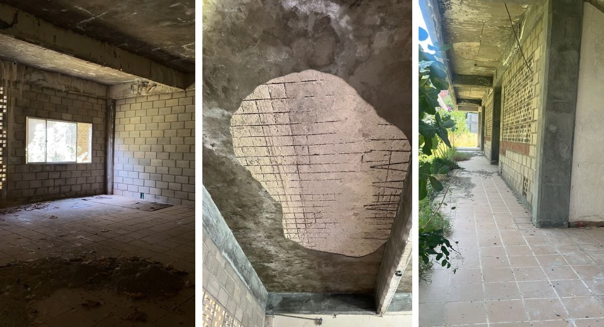 El Megacolegio de Taganga, hoy es una obra inacabada llena de óxido, heces de paloma, animales silvestres y columnas averiadas.