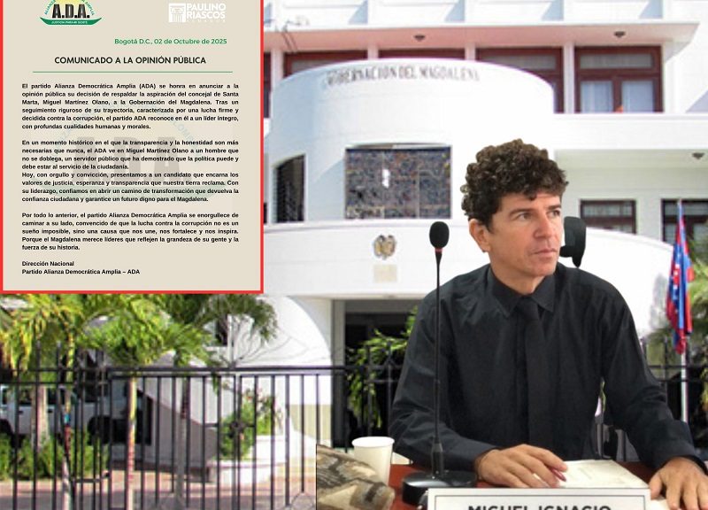 El concejal samario oficializó su renuncia este viernes para aspirar con el aval del partido ADA a la Gobernación del Magdalena, en un pulso político directo contra Carlos Caicedo y Fuerza Ciudadana. El concejal samario Miguel ‘El Mono’ Martínez, reconocido por su estilo frontal y por cuestionar tanto a la administración distrital como a sus […]