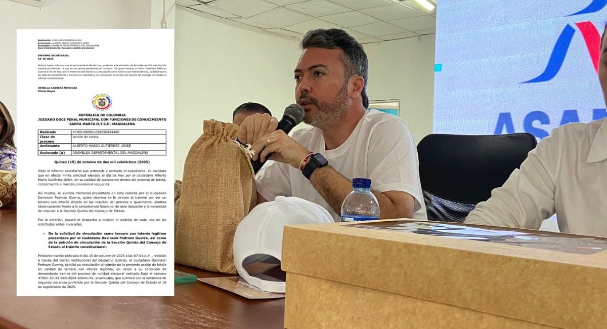 Jueves 16 de Octubre de 2025 – 8:14amUn conflicto de poderes se ha vivido esta semana al interior de la Asamblea del Magdalena, luego que quedara en firme la salida de Alberto Gutiérrez por doble militancia, tal como lo determinó el Consejo de Estado.