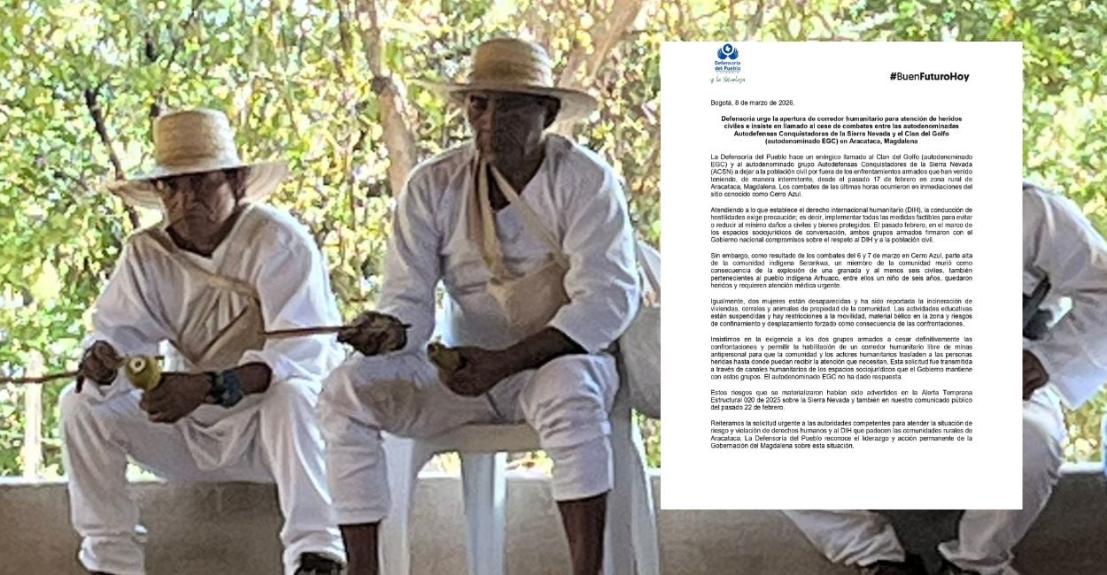 Lunes 09 de Marzo de 2026 – 8:49amLa guerra territorial que libran las Autodefensas Conquistadoras de la Sierra Nevada (Acsn) y el Clan del Golfo en Aracataca, Magdalena, ha escalado a niveles de barbarie en el territorio ancestral Arhuaco.
