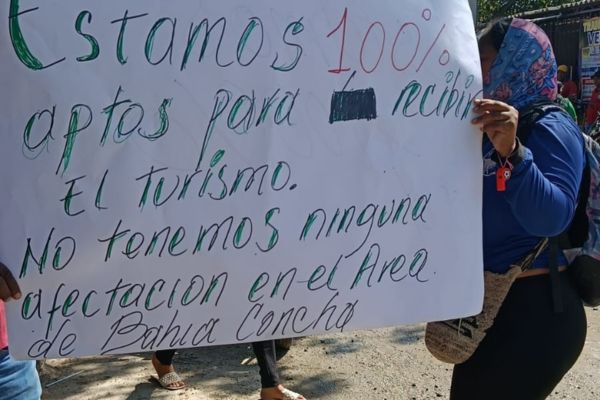 Durante la mañana de este sábado, operadores turísticos de Bahía Concha se concentraron en la entrada del sector para enviar un mensaje claro a los visitantes: están aptos para atender y no existe ninguna afectación en el área que impida el desarrollo de actividades turísticas.