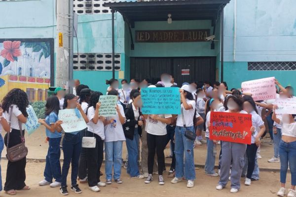 Con carteles y arengas, padres de familia y estudiantes de la Institución Educativa Distrital Madre Laura, en el barrio Pescaíto de Santa Marta, realizaron este jueves una protesta pacífica para exigir soluciones ante el deterioro del colegio, que permanece cerrado desde el pasado lunes tras el fuerte aguacero que afectó a la ciudad.