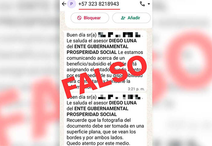 Prosperidad Social anunció que está tomando acciones legales para detener dichas prácticas y exhortó a la ciudadanía a no responder mensajes sospechosos, no entregar información personal a desconocidos y denunciar cualquier intento de estafa.
