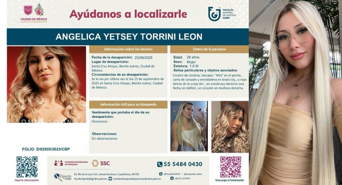 Viernes 26 de Septiembre de 2025 – 11:32amLa Fiscalía General de Justicia de Ciudad de México publicó el reporte oficial de la desaparición de Angélica Yetsey Torrini León, de 29 años, conocida en el mundo del entretenimiento para adultos como Angie Miller.