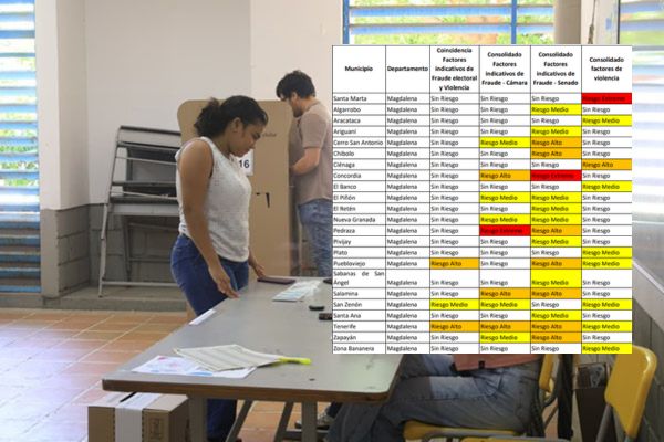 En el caso específico del departamento de Magdalena, el estudio concluyó que hay tres municipios en riesgo por coincidencia de factores indicativos de fraude electoral y de violencia: Puebloviejo y Tenerife, con riesgo alto, y San Zenón, con riesgo medio.