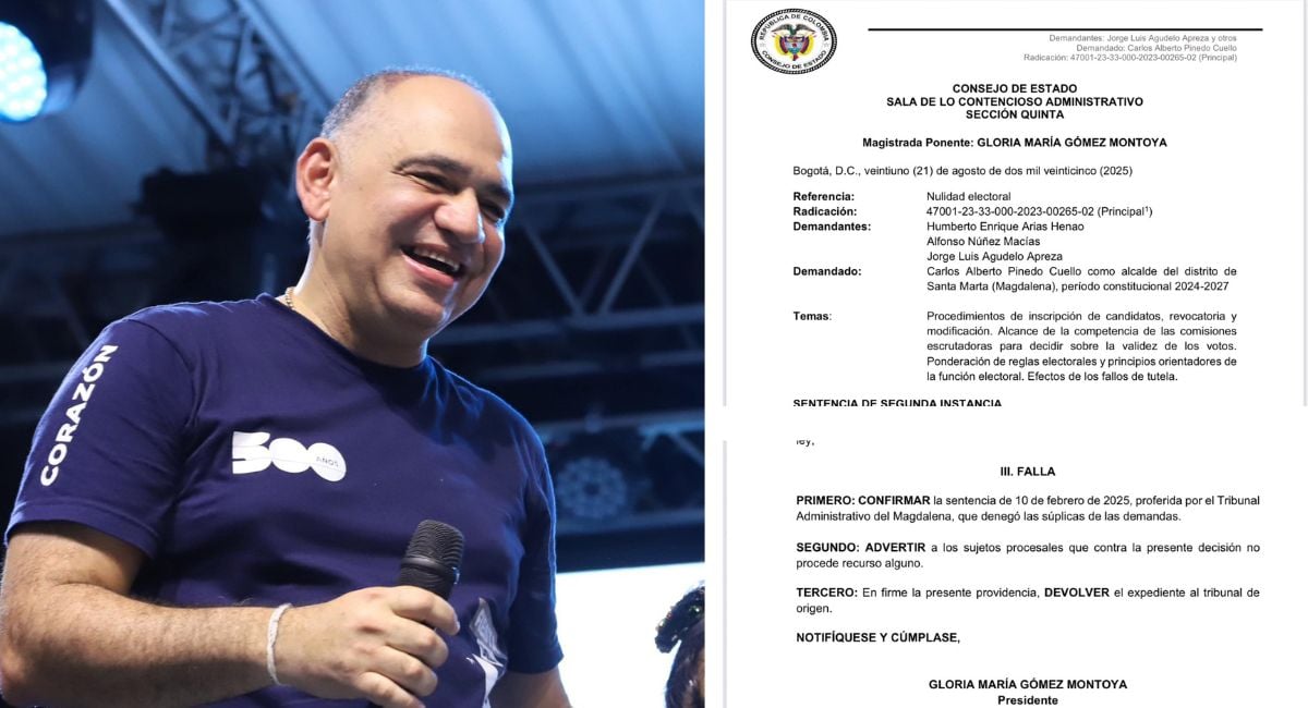 No obstante, tras un largo proceso, este jueves se conoció que la decisión del Consejo de Estado que ratificó la legalidad de Carlos Pinedo como alcalde de Santa Marta .