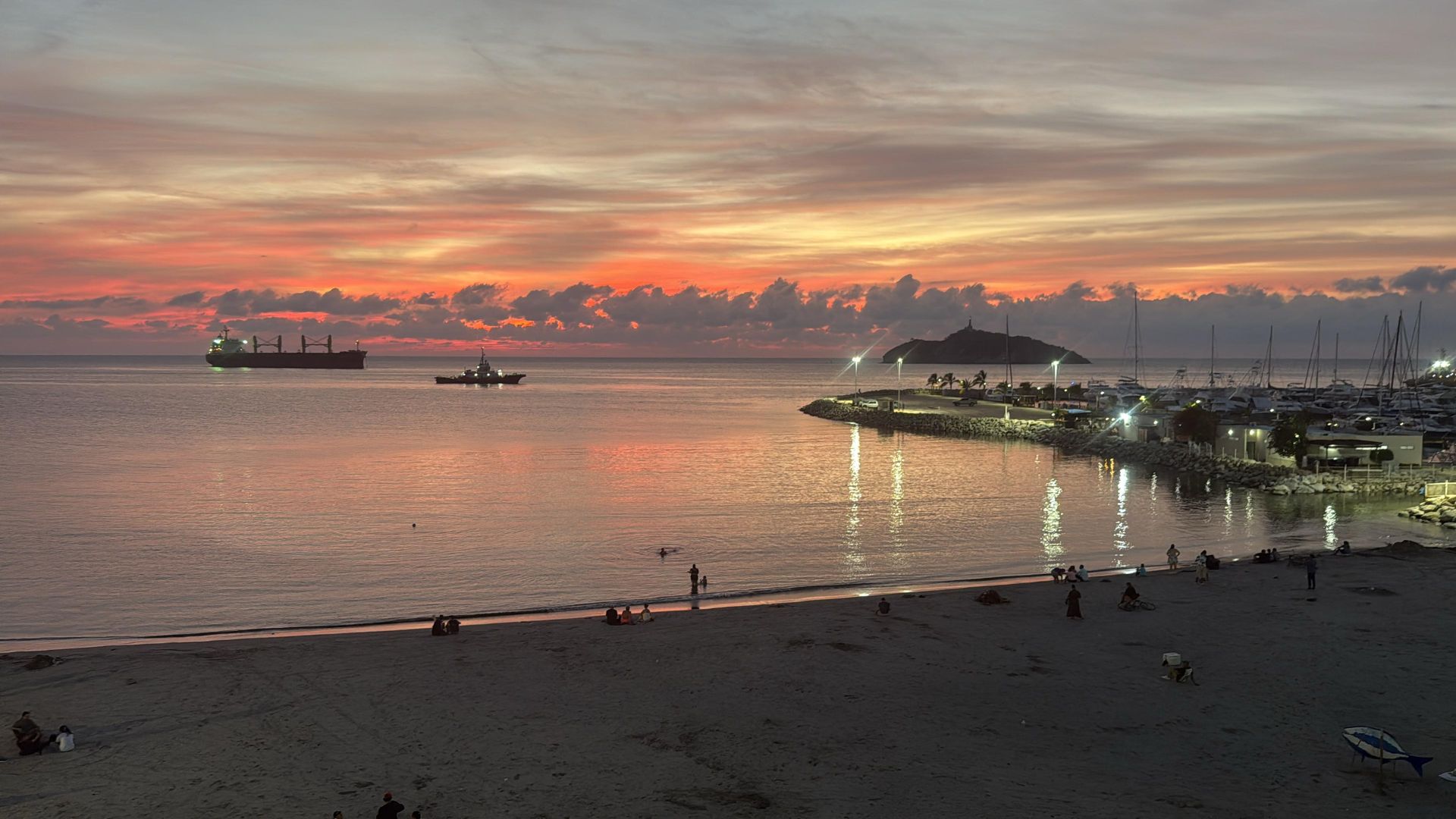 En la Bahía se formó un cuadro perfecto armonizado por El Morro, el mar, las embarcaciones, la Marina Internacional y los colores que dieron la bienvenida a la noche.