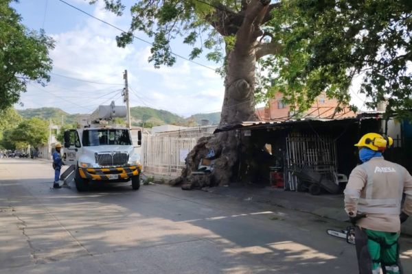 Luego de una inspección técnica del Departamento Administrativo Distrital de Sostenibilidad Ambiental (Dadsa), que determinó que el palo presentaba un avanzado estado de deterioro y representaba un riesgo para la comunidad cercana. Hoy jueves podaran el árbol de bonga ubicada en el barrio 20 de Julio.