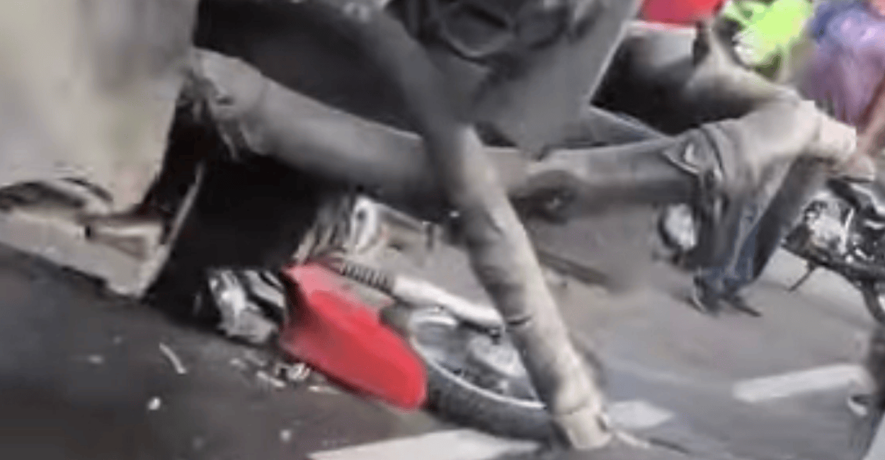 La magnitud del choque provocó que el conductor de la moto cayera de forma estrepitosa sobre el pavimento, sufriendo múltiples heridas en diferentes partes de su cuerpo.