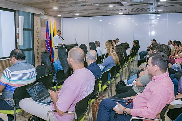 En el marco de esta visita, se realizó la Conferencia Creatividad, Innovación y Disrupción: Triada para la formación del profesional en el siglo XXI y transformar Organizaciones y Currículos Universitarios, a cargo del doctor Alexander Ortiz Ocaña, docente de esta Alma Mater, a la que asistieron directores de programa, docentes, investigadores, graduados y estudiantes.