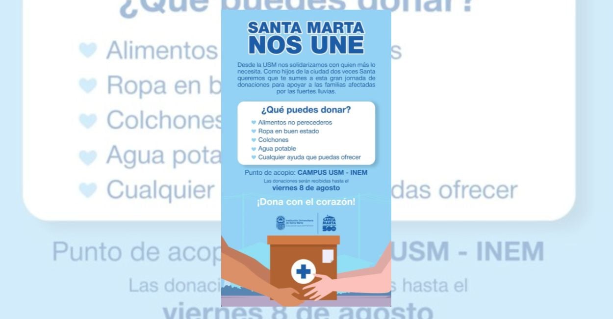 USMSanta MartaDonaciónla samariaA través de un comunicado la institución explicó que la medida tiene como objetivo garantizar la seguridad de la comunidad educativaVisible: Sívanessaredondo
